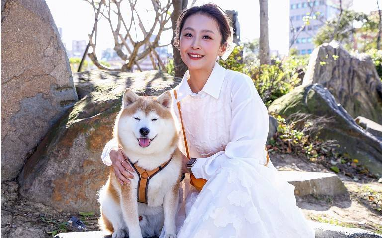 Uni是林昀希男友的狗狗,林昀希讚男友非常有一套,搞定傲嬌的柴犬,「男友當初是照書養的,用一個教指令的哨子,讓牠學會基本的趴下坐下躺下,現在牠很有規矩,也很穩定,男友在教育這方面做得很好。」