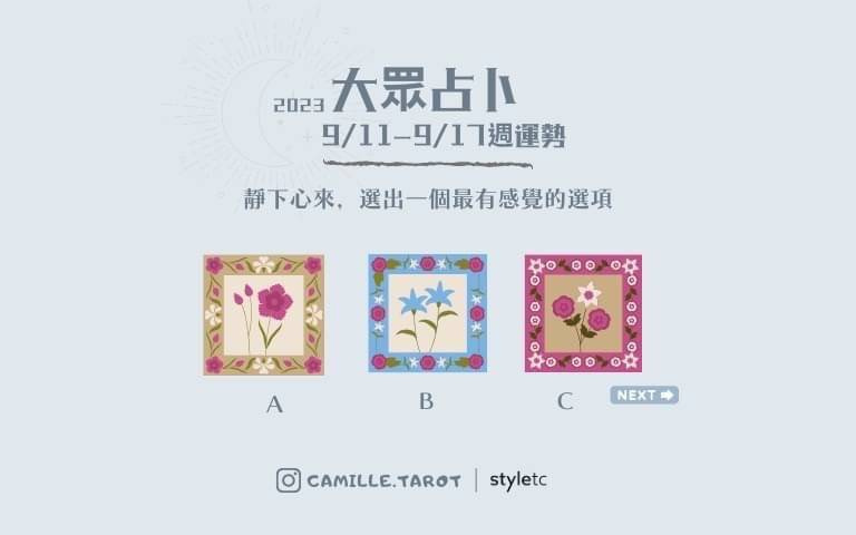 更多大眾占卜請至Camille卡蜜兒粉絲專頁,每週定期更新大眾占卜及週運勢,歡迎追蹤關注Camille卡蜜兒的社群唷的!