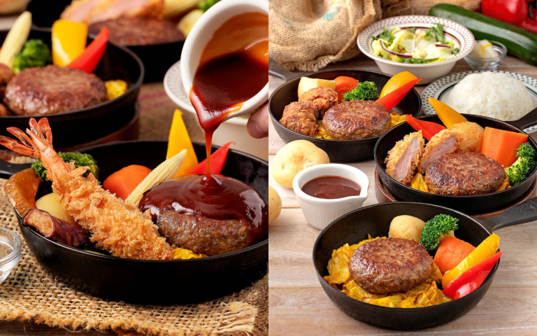 日本漢堡排品牌陸續來台展店,顯現台灣人對於漢堡排的喜愛,由日籍顧問所監製的「泰迪農園咖哩」,也開賣豐富澎湃的漢堡排雙拼,包含多蜜醬漢堡排、酥炸究好豬腰內雙拼、酥炸雞腿雙拼和炸蝦雙拼等,千萬別錯過!