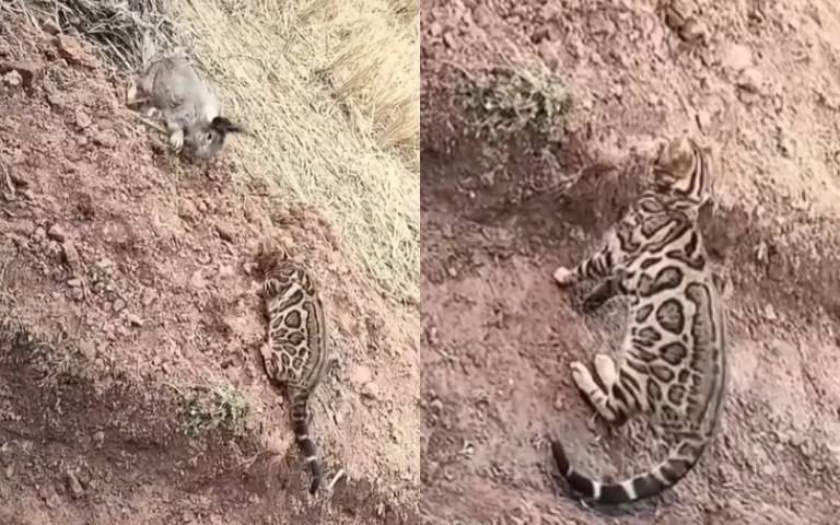 豹貓的骨子裡到底是豹還是貓?最近一段影片見真章,可以看到一隻豹貓潛伏在一隻兔子旁邊,先是靜靜地望向對方幹飯,本以為牠會衝上去獵殺兔子,但最後的結果卻是令人感到意外。