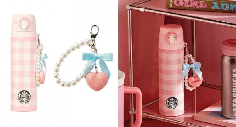 這款與膳魔師聯名的粉色格紋保溫杯應該是最快被秒殺的款式,尤其最近天氣寒冷更需要保溫杯裝滿暖心飲料陪伴度過每一日,除了格紋以外旁邊還有以外旁邊還有一個愛心珍珠小墜飾簡直太犯規,難怪被網友票選第一難買。