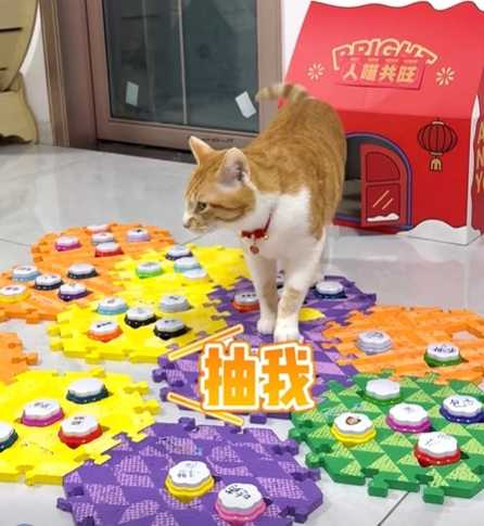 最近一段影片在網上曝光,可以看到一隻貓咪貌似剛睡醒,從牠的窩裡跑了出來,見到眼前擺了好多個寵物溝通的按鍵,於是牠便壓下其中一個按鍵,接著就傳出聲音「抽我!」主人聽到一開始有點訝異,但還是乖乖地按照小喵的要求去找了一根小棒棒。