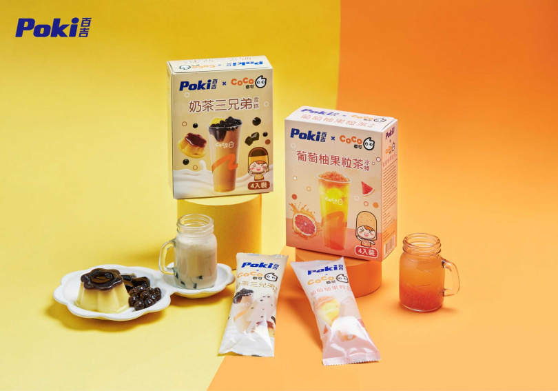 Poki百吉繼3月推出「花生好酥雪糕」、「佳興檸檬棒棒冰」之後,希望用「發生好事」、「加薪」等寓意,讓消費者的日常天天充滿好運;品牌接力與鮮果茶手搖名店大苑子聯名推出2款新品,將銷量破百萬的人氣芒果手搖飲變成清爽過癮的「愛文芒果冰棒」;及以草莓牛奶雪糕為基底,添加草莓汁與草莓果粒,打造層次豐富的「莓好時光雪糕」。此外,Poki百吉也再度與知名手搖飲品牌CoCo合作,把CoCo必點排行榜飲品再度化身冰品,打造「奶茶三兄弟雪糕」、「葡萄柚果粒茶冰棒」2款手搖系冰品。其中「奶茶三兄弟雪糕」以濃郁奶茶基底結合布丁、仙草凍、珍珠三種配料,滿足咀嚼控味蕾;「葡萄柚果粒茶冰棒」則還原飲品本身的酸甜果粒與茉莉綠茶香,風味酸甜消暑。