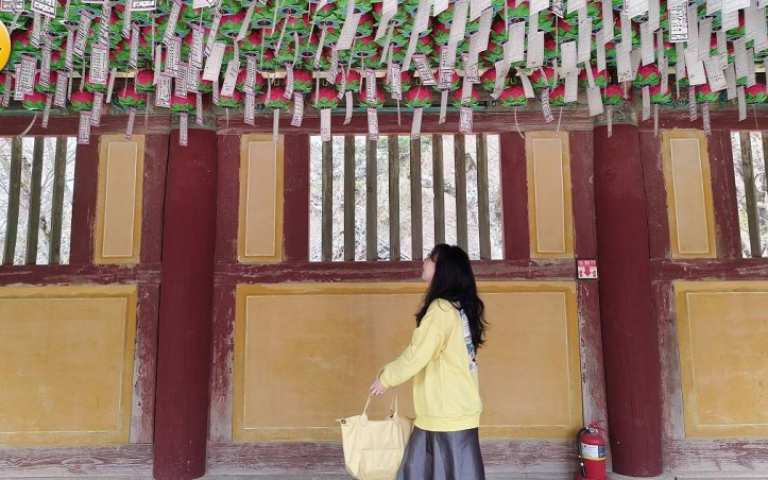 記者選擇的是包含良洞村文化的一日遊團,首站來到的是有將近1千5百年歷史、同樣被列為世界文化遺產的「佛國寺」,若在櫻花季或楓葉季時前往更是美不勝收。佛國寺曾經歷壬辰倭亂戰事,不少重要文物受到燒毀或掠奪,後經過多次擴建與整修,現仍保留了多寶塔、蓮華橋、金銅毗盧遮那佛坐像、金銅阿彌陀如來坐像等韓國國寶。而寺院內還有一個人氣頗高的打卡點「金豬」,遊客們總忍不住摸摸其身體希望可以招財,還有傳聞說其鼻子會噴出財氣,因此不時可見觀光客做出類似鼻對鼻的動作拍照,準備接收好運來。