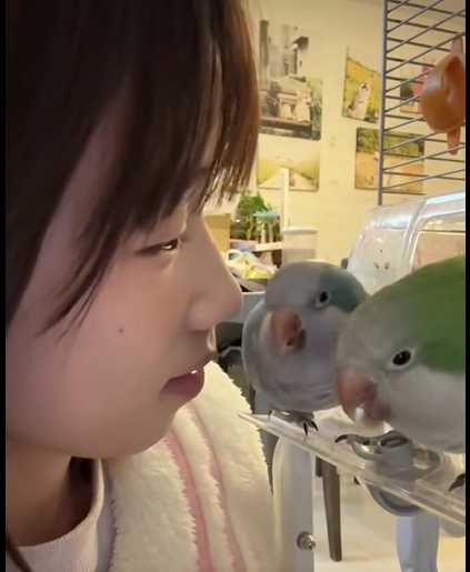 最近一段影片在網上曝光,可以看到一名女子拿起手機玩自拍,身旁則是站著兩隻可愛的鸚鵡,她決定給這兩隻小可愛送上暖心熱吻,連續親了牠們好幾下,而鸚鵡貌似也感受到牠們的熱情,只有女子一親牠們,牠們就會發出同等的聲音,宛如是在用同樣強度的熱情,提供給主人滿滿的情緒價值。