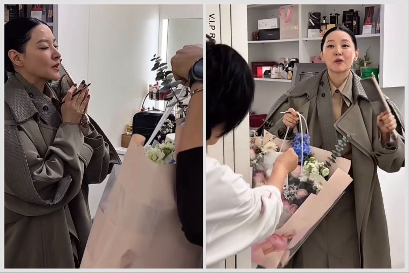 從曝光的影片截圖中可以看到,李英愛站在化妝間裡,被工作人員包圍慶生。她接過花束與卡片時,神情溫柔自然,甚至帶著一點靦腆,與稍早在秀場上展現的女王氣場形成迷人反差。