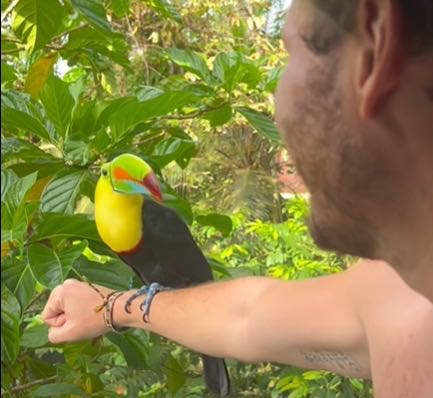 巨嘴鳥(Toucan)屬於聰明且具備高度好奇心的鳥類,智商頗高,在與人類互動上可達到相當親密的程度,最近一段影片在網上曝光,可以看到一名男子在野外看到一隻巨嘴鳥,當他將手打開,巨嘴鳥竟然相當有靈性地直接飛到他手上,儘管他知道這隻鳥是一個最好的玩伴,但最後仍希望對方回歸野外,當一隻真正的鳥。